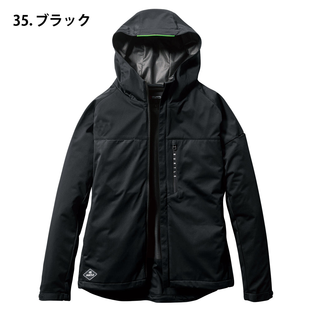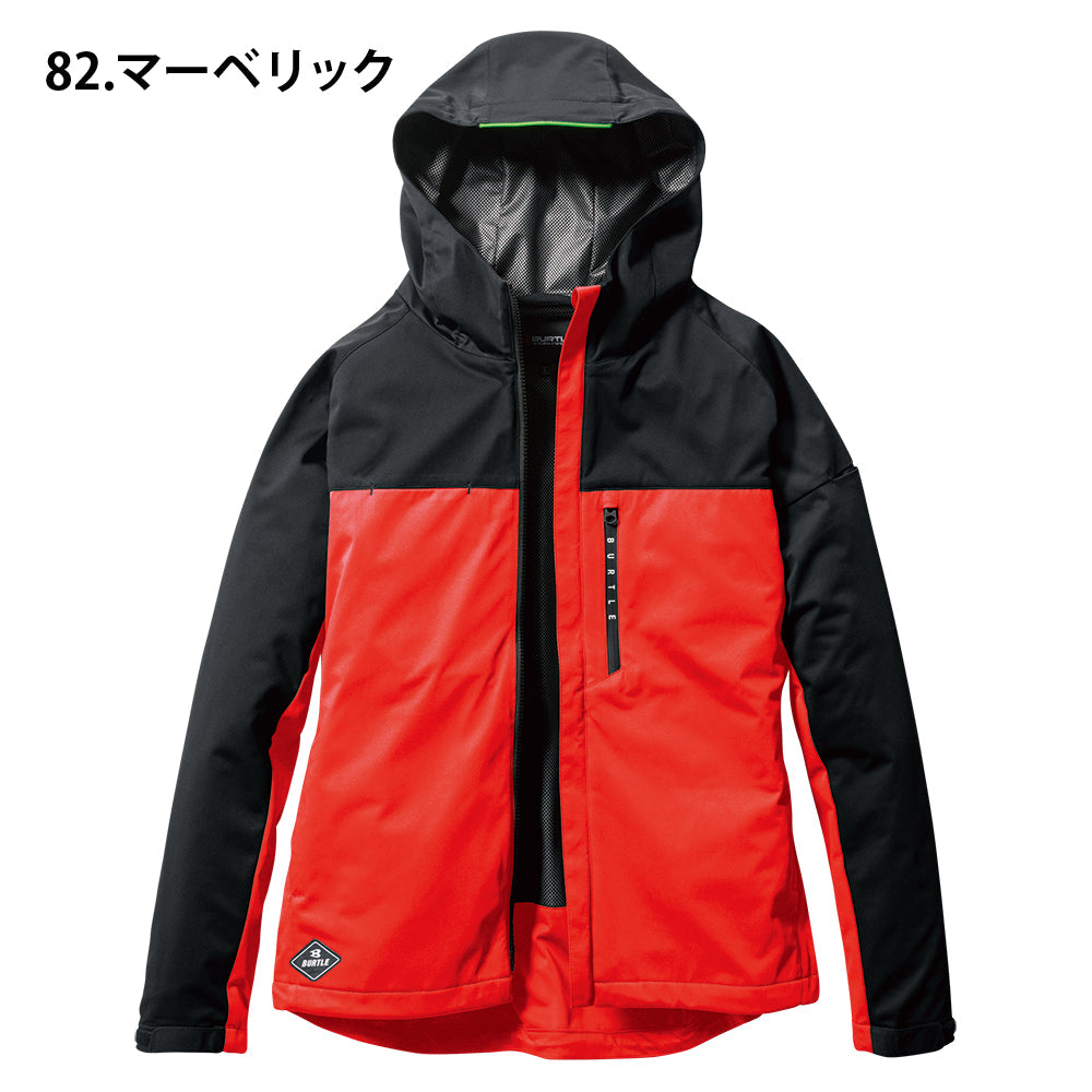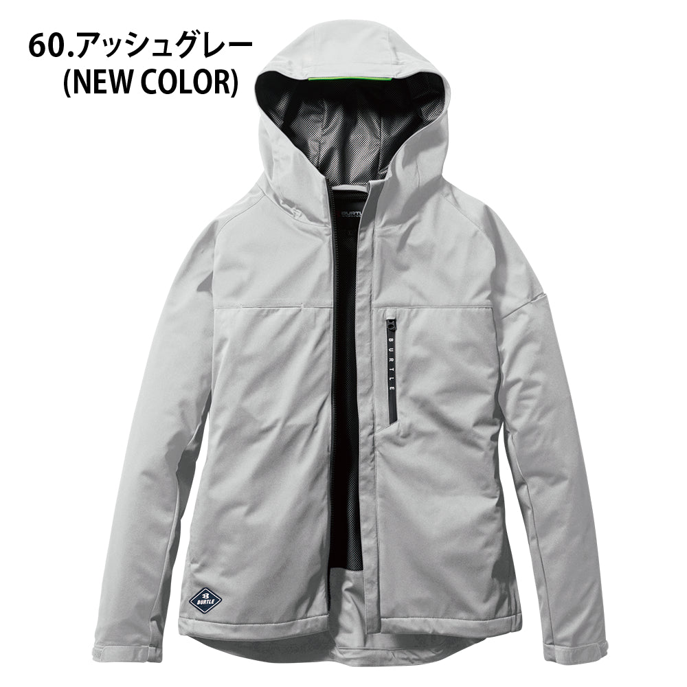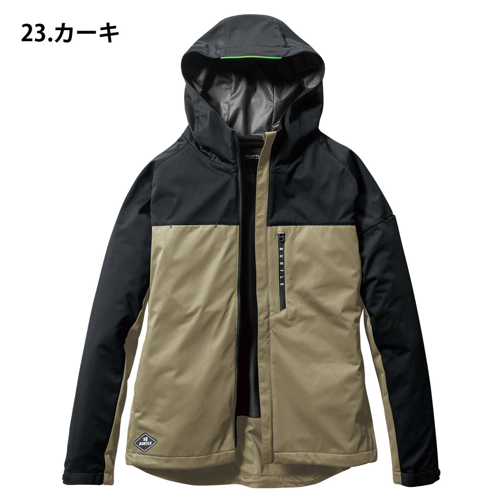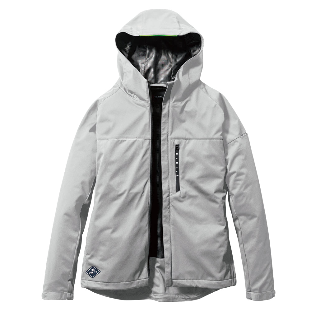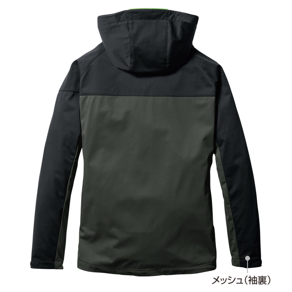中綿無しによる程よい保温性と防水、防風、ストレッチ性に優れたスポーティなフーデッドジャケット。