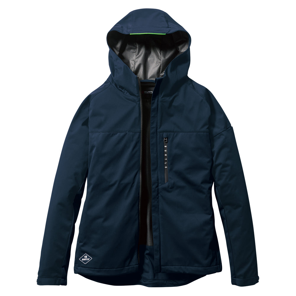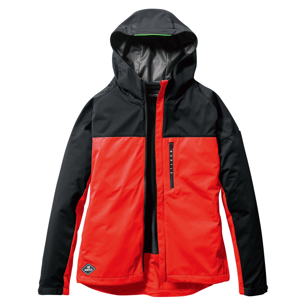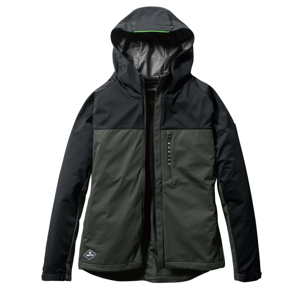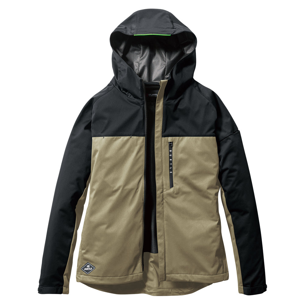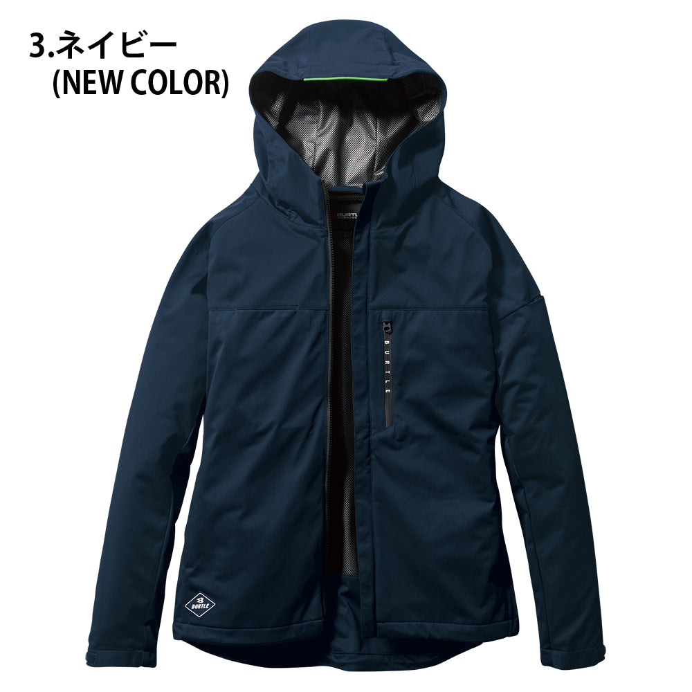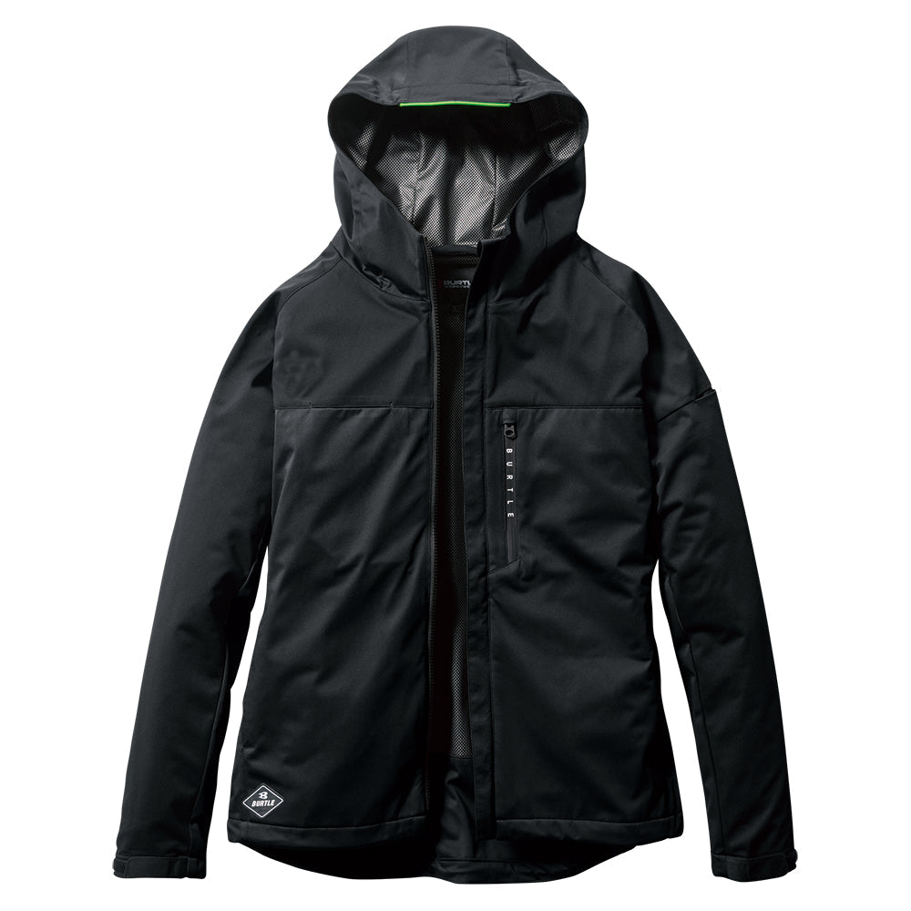 中綿無しによる程よい保温性と防水、防風、ストレッチ性に優れたスポーティなフーデッドジャケット。