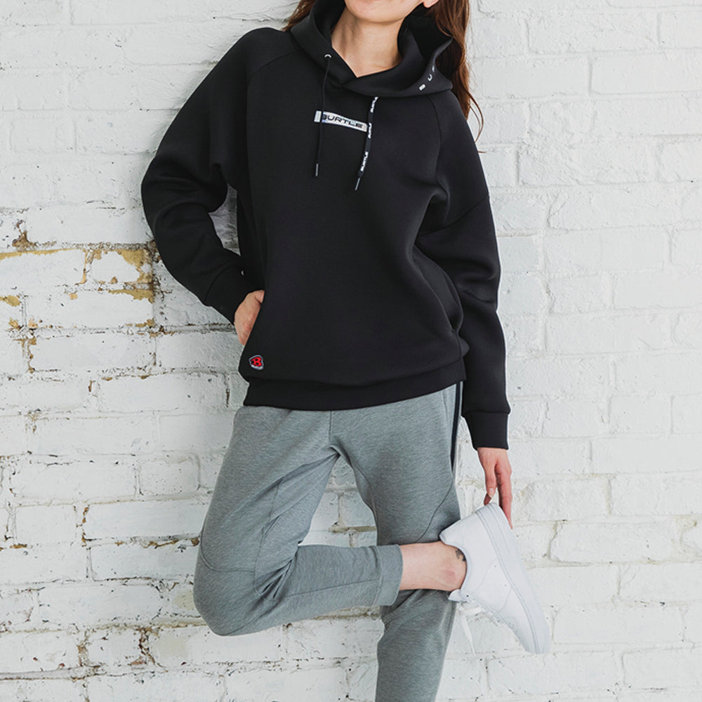 保温性やストレッチ性に優れるダンボールニット素材を使用したキャッチーな付属使いのスポーティウェア。