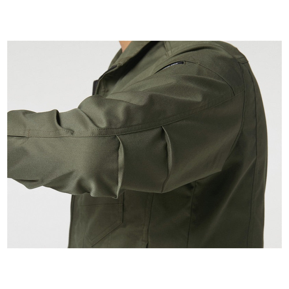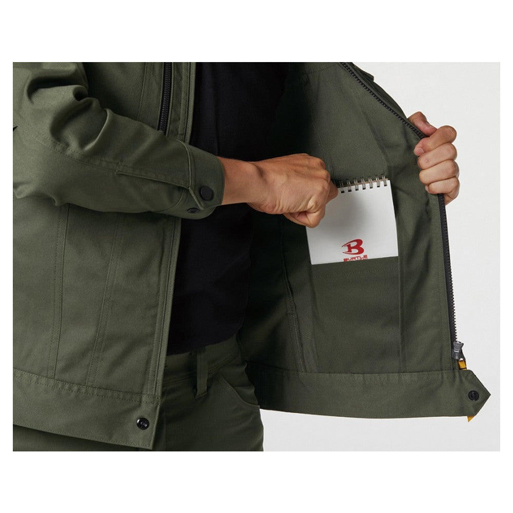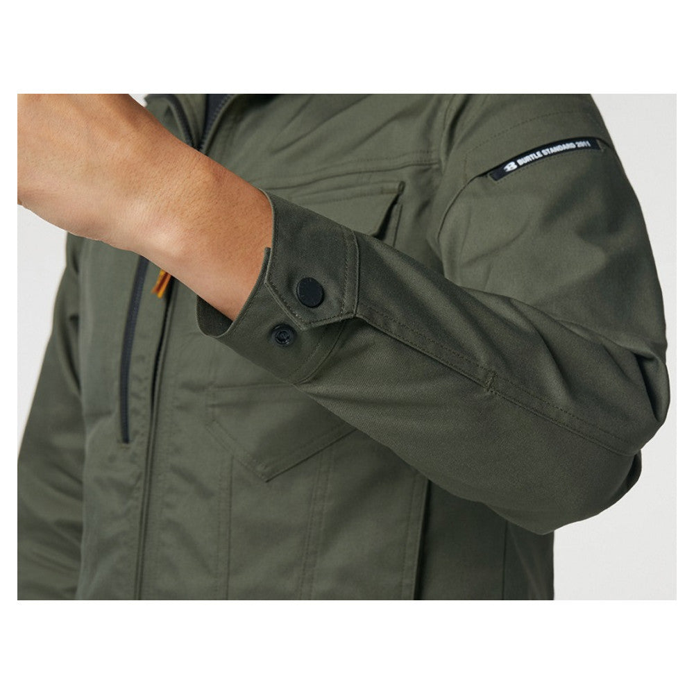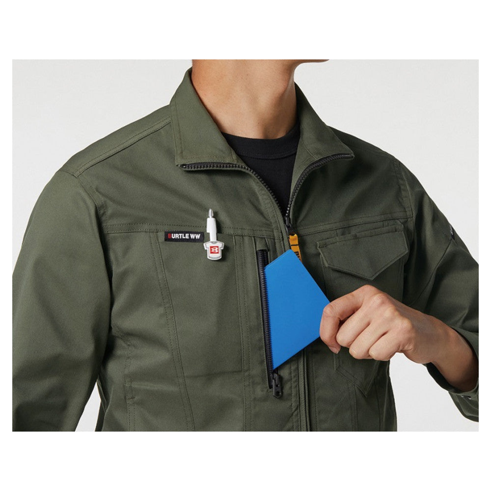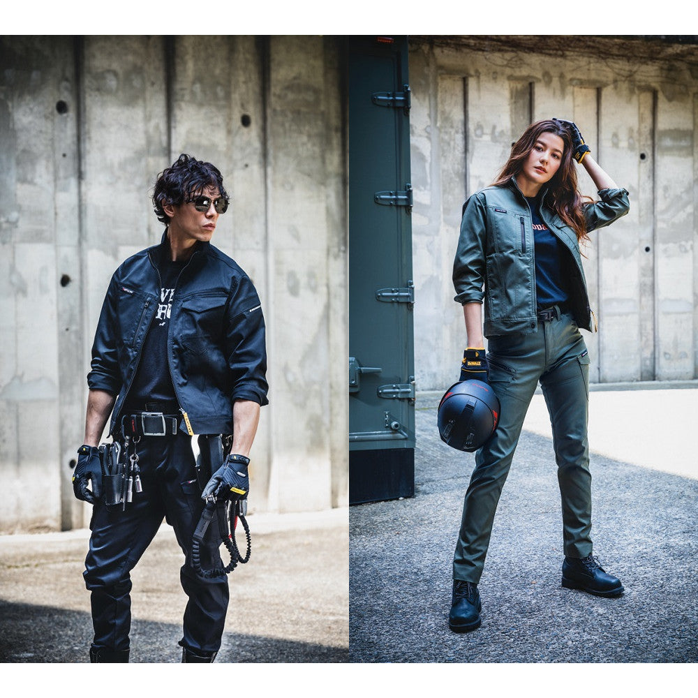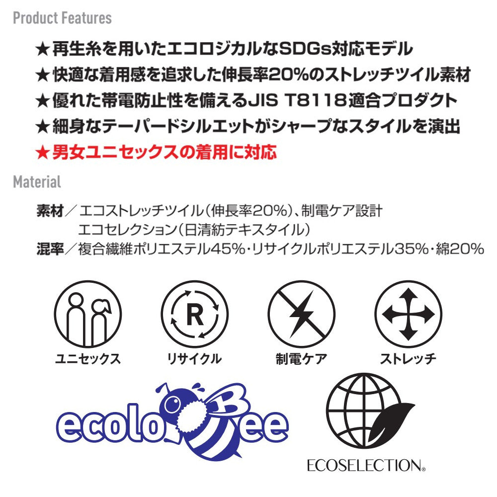 素材:エコストレッチツイル(伸長率20%)・制電ケア設計・エコセレクション(日清紡テキスタイル)混率:複合繊維ポリエステル45%・リサイクルポリエステル35%・綿20%