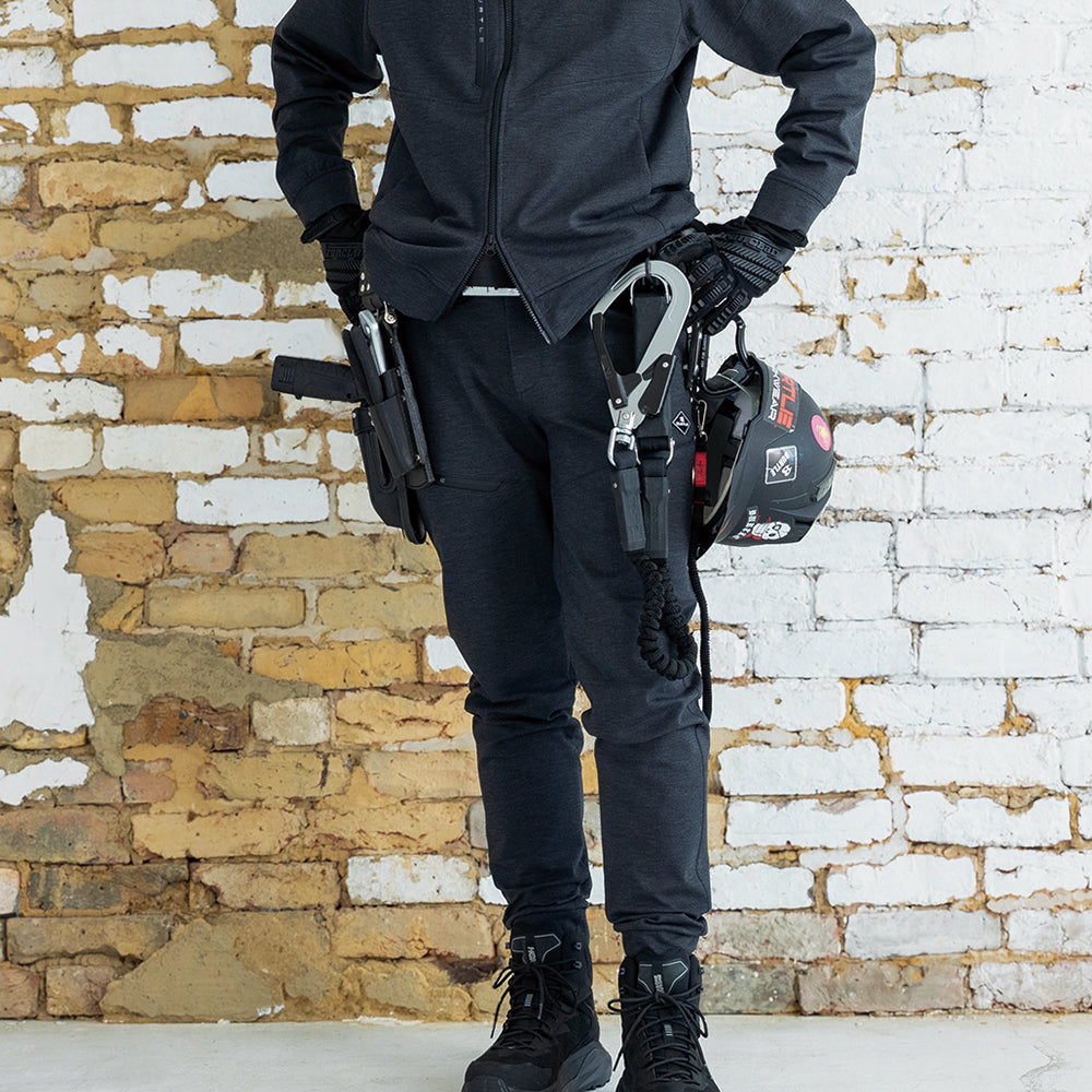タフなワークシーンにフィットする高強度なコーデュラニットを使用しスポーツのユーティリティ性を追求したテックウェア