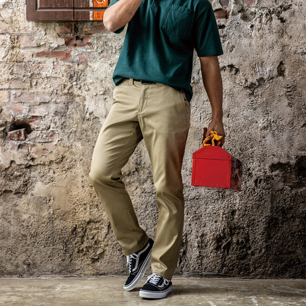太めのベルトループやウォッチポケットなどディティールにもこだわったワークにもカジュアルにも幅広いシーンで活躍するチノ。