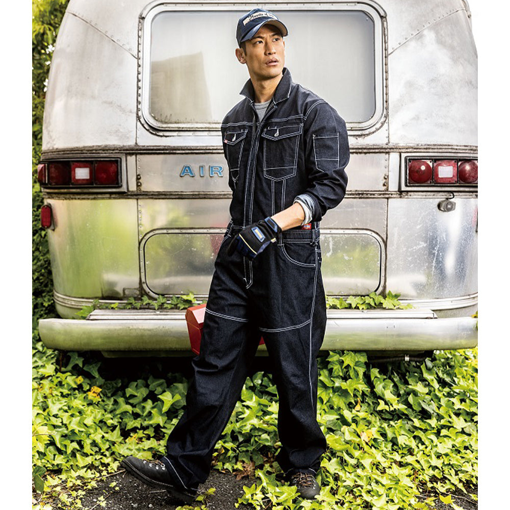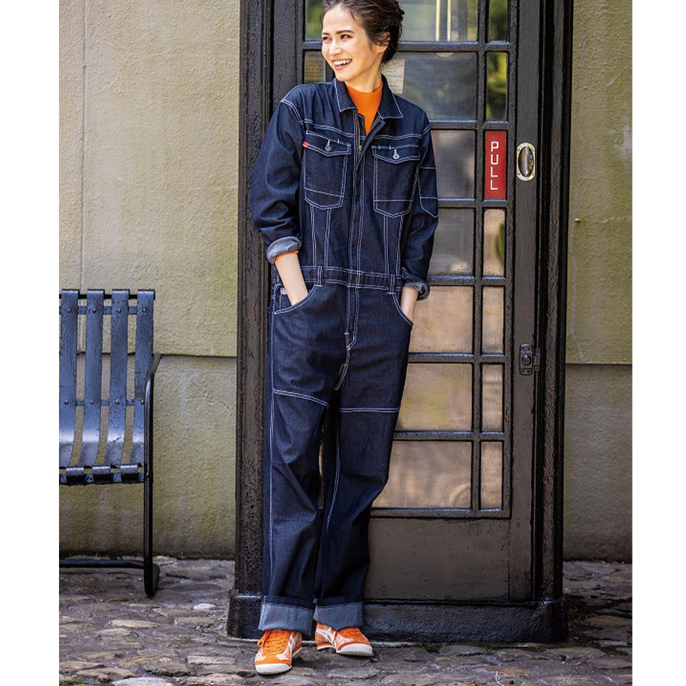 アメイジングストレッチを効かせたデニムツナギ。