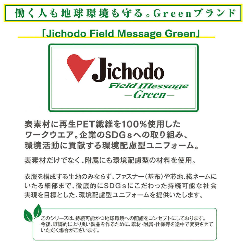 植物由来PET繊維「PLANTPET(R)」を使用し、 SDGsの達成に貢献できるエコロジカルなワークウエアシリーズ。