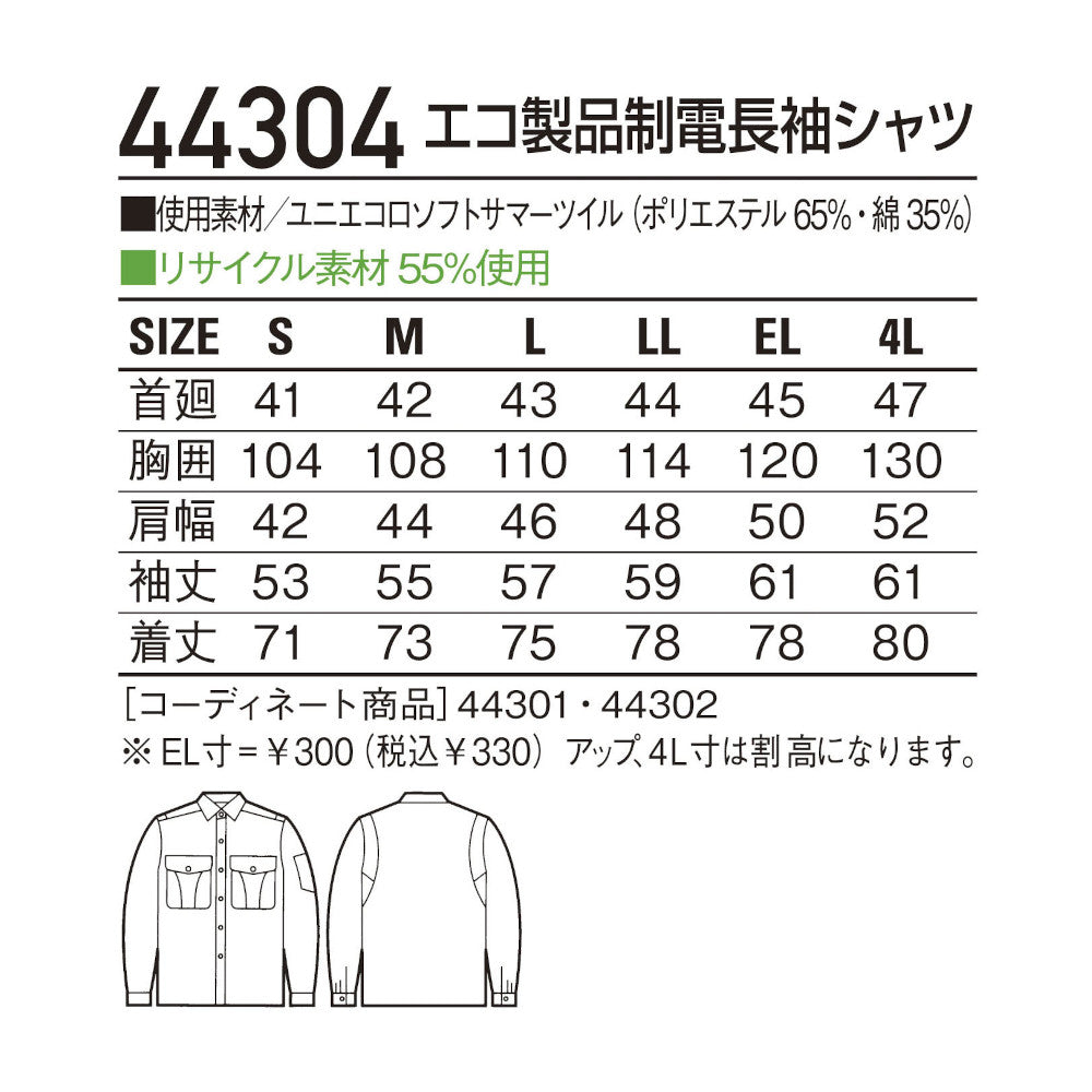 エコ製品制電長袖シャツ 44304