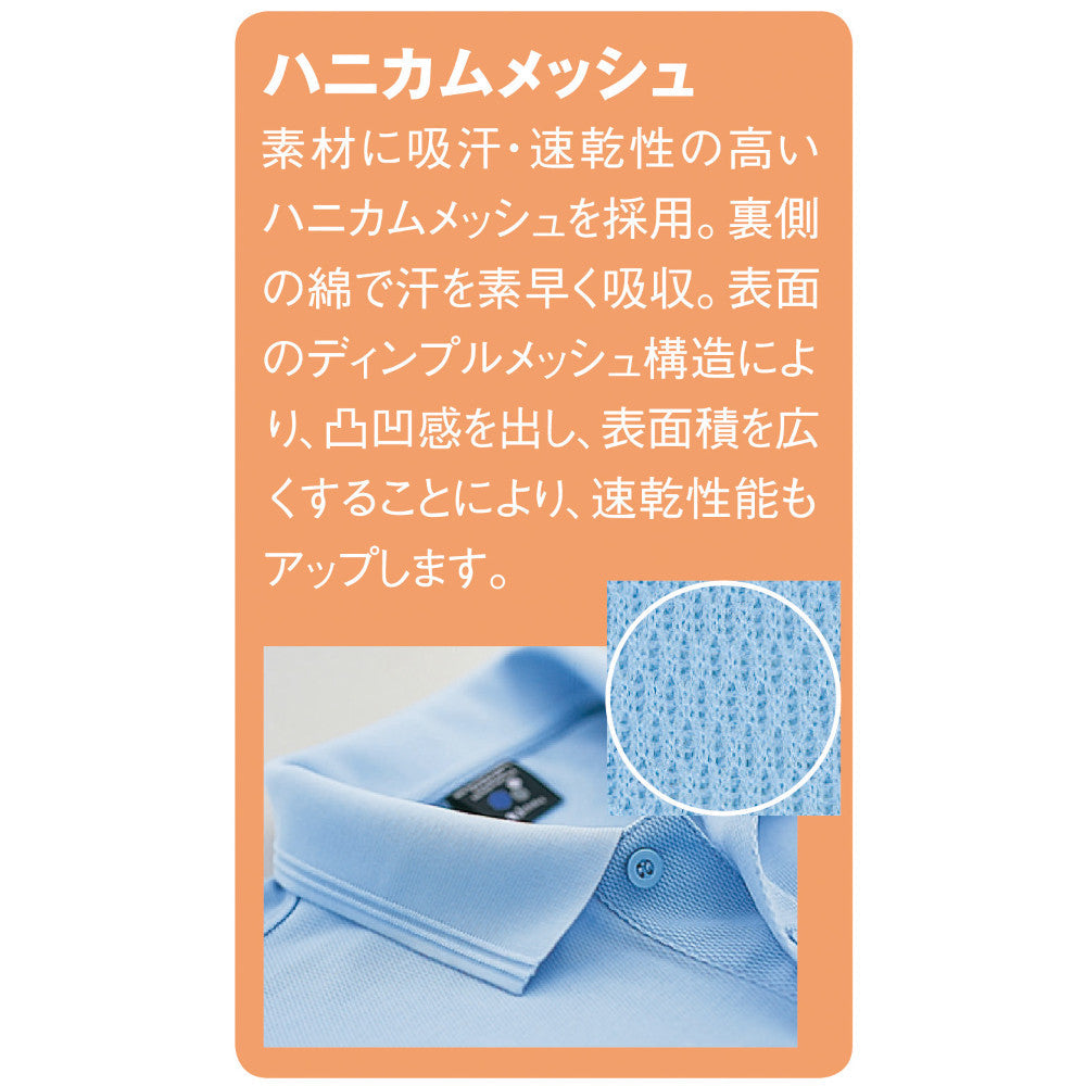カラーバリエーション豊富なハニカムメッシュの爽快な着用感。吸汗速乾性に優れ、肌触りの良い裏綿素材を使用。