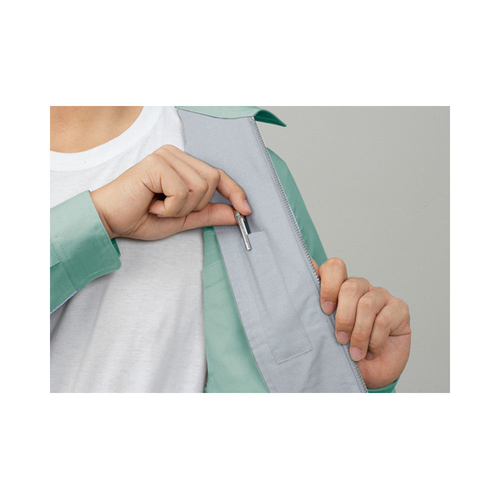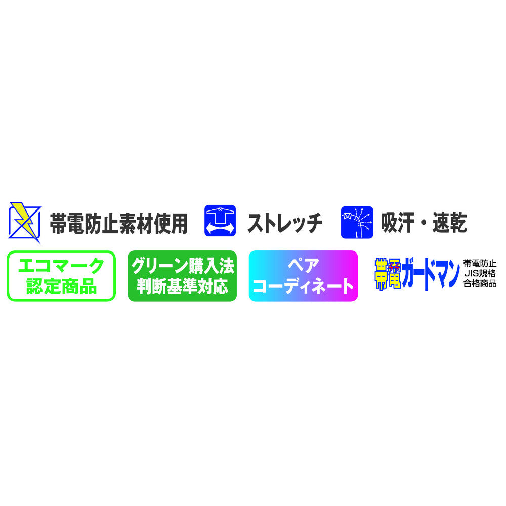 多機能ペアユニフォームで様々なニーズにも対応。吸汗速乾加工を施し、ストレッチ機能を付加したエコ素材。作業中の腕のつっぱりを解消するためにウィングアームⅡを採用。