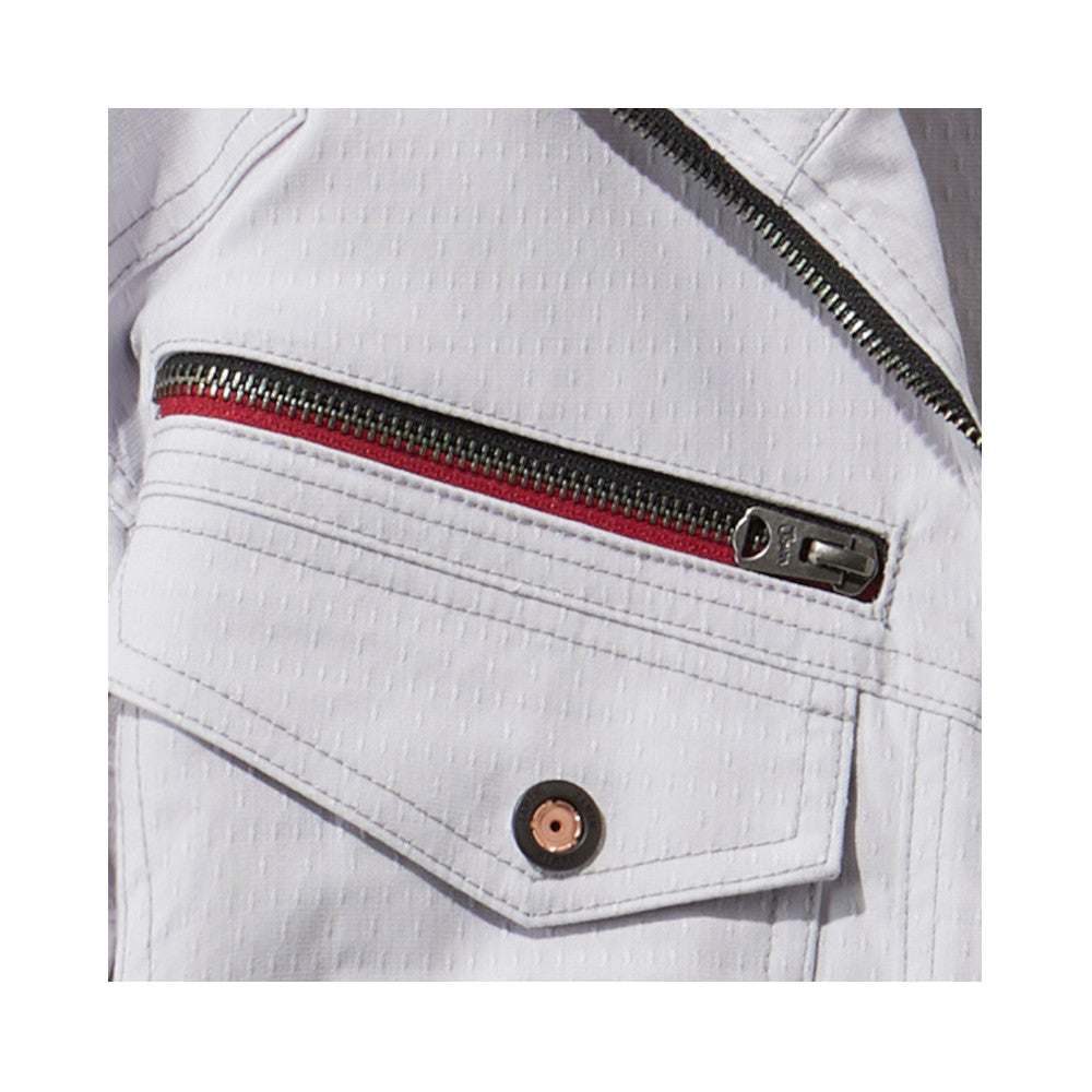 ブラック×レッドのコンビファスナーが斬新。ドット柄の変わり織り素材とレッドの附属使いでJawinらしさを演出する新シリーズ。
