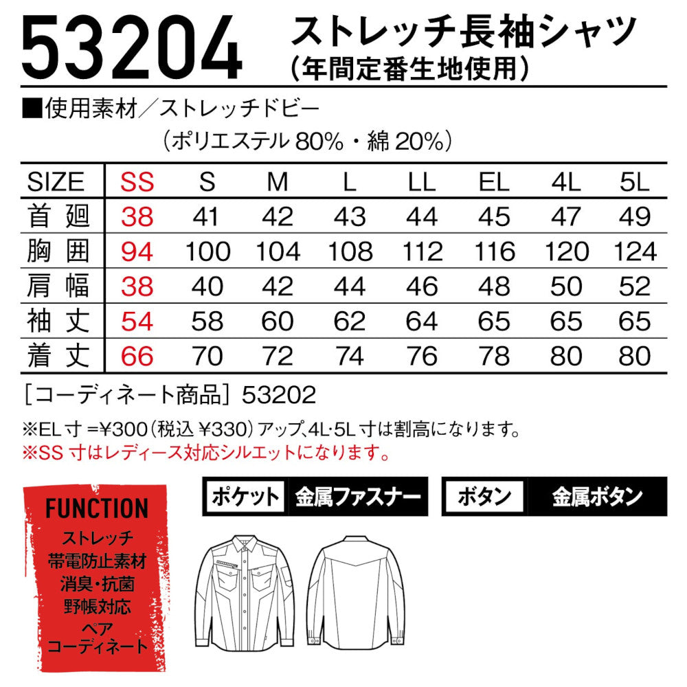 Jawin ストレッチ長袖シャツ 53204