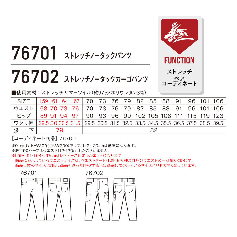 Z-DRAGON ストレッチノータックカーゴパンツ 76702