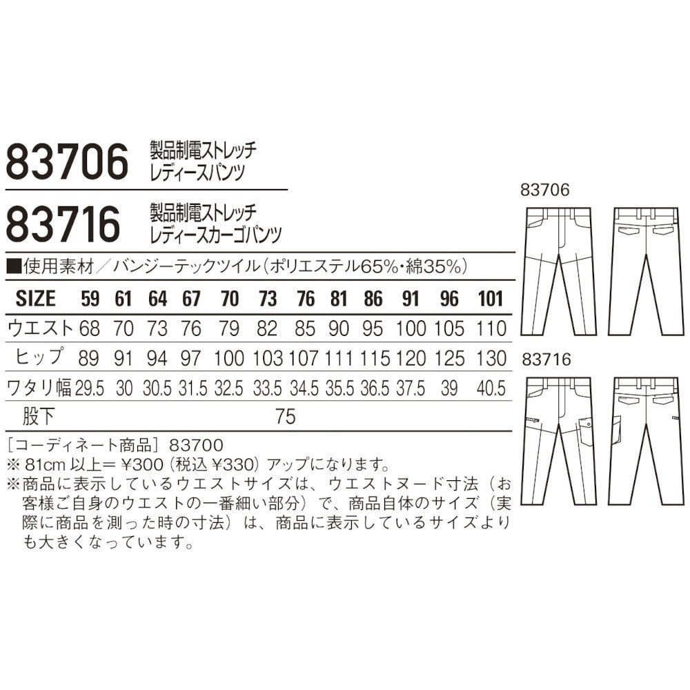 製品制電ストレッチレディースパンツ 83706