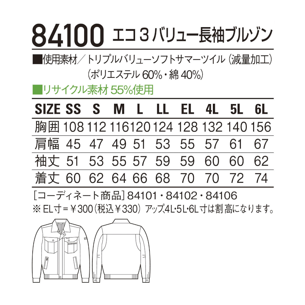 エコ3バリュー長袖ブルゾン 84100