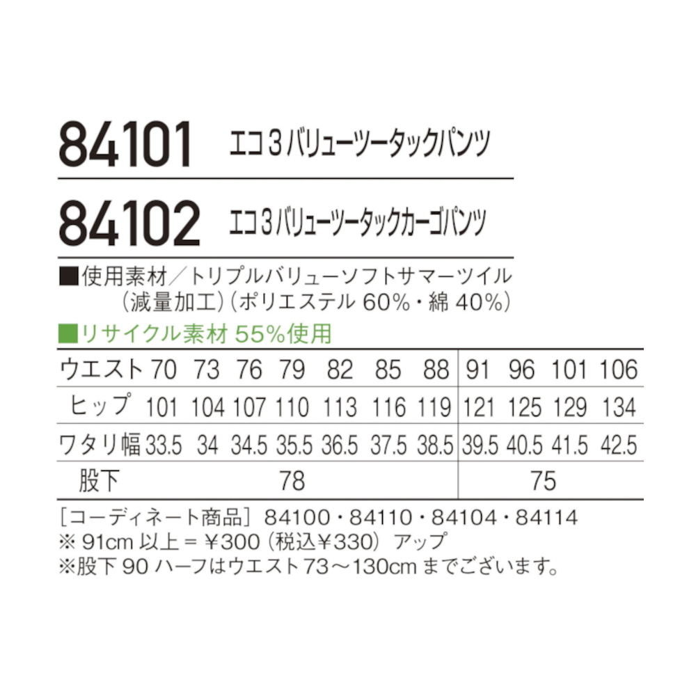 エコ3バリューツータックカーゴパンツ 84102