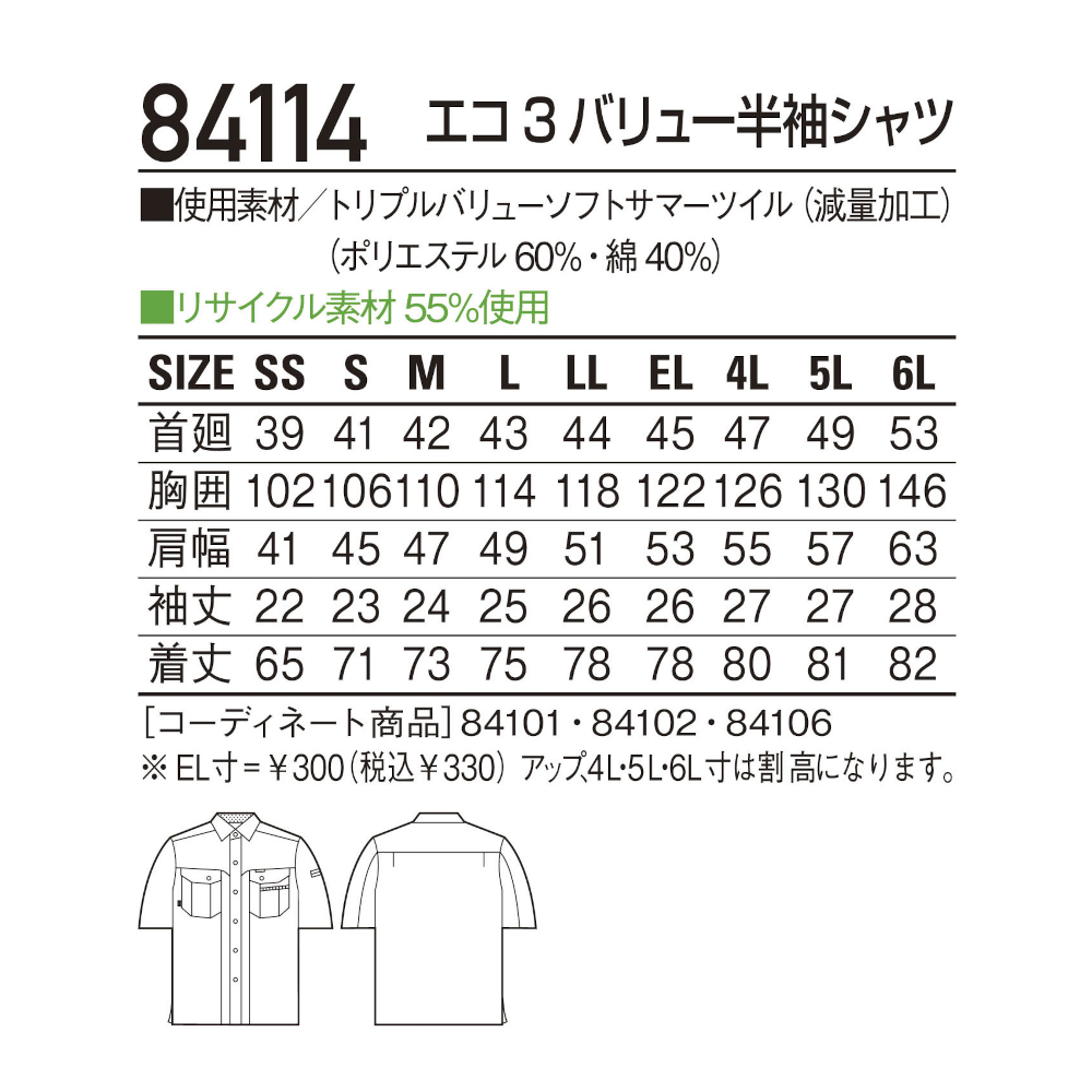 エコ3バリュー半袖シャツ 84114