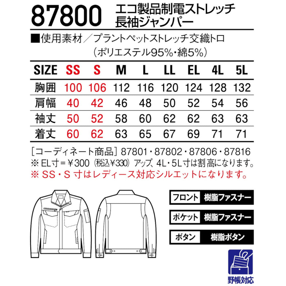 エコ製品制電ストレッチ長袖ジャンパー 87800