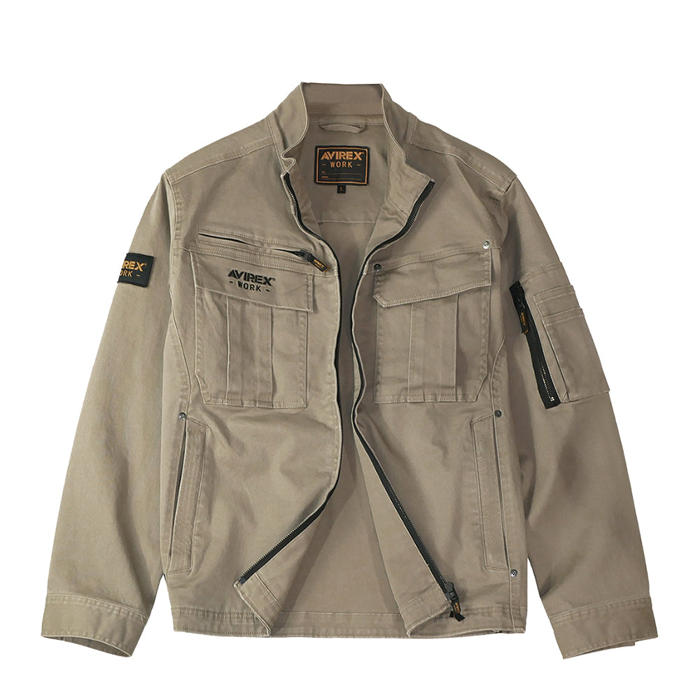 左袖の多機能ポケットや両脇のファスナーポケットなど実用的な収納を備え、作業時にも街着としても活躍します。