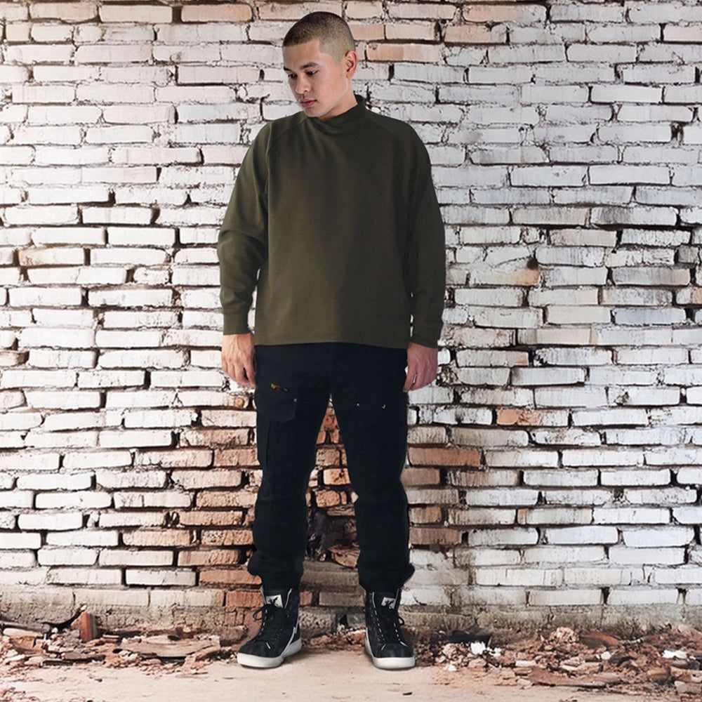 シンプルながら洗練されたデザインのモックネックシャツ。