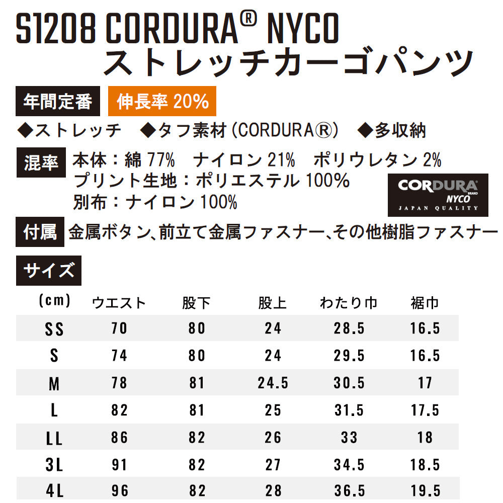 [STUD'S]CORDURA® NYCO ストレッチカーゴパンツ S1208