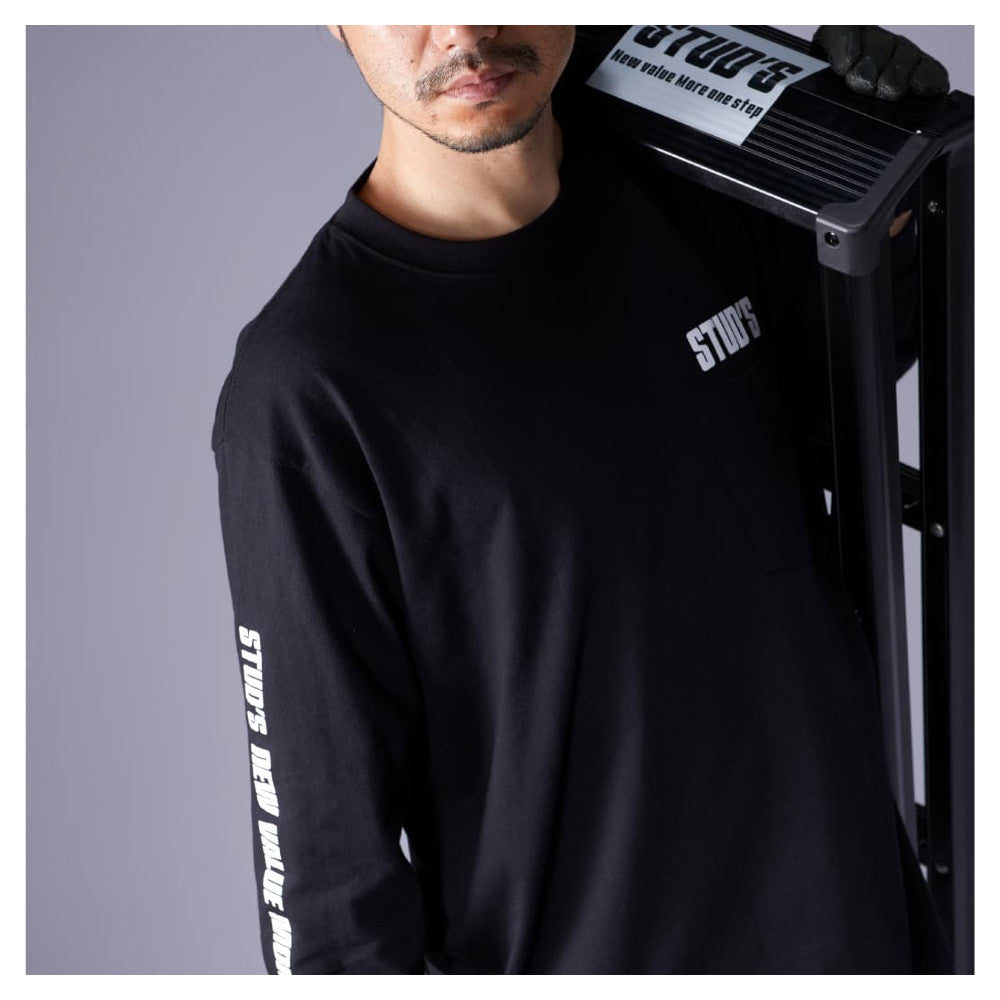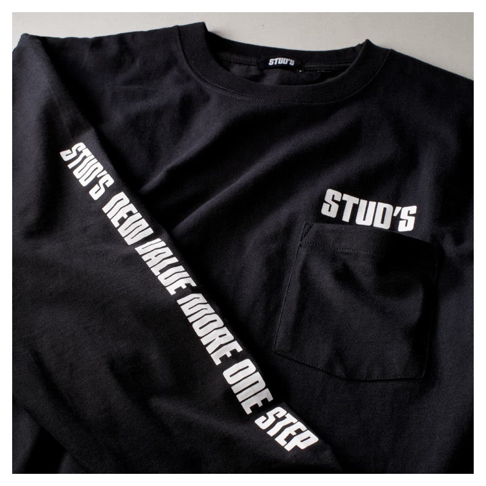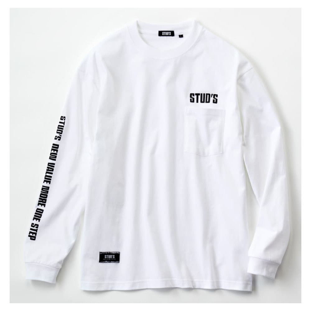 タウンユースにもばっちり馴染むSTUD'Sロゴ入りの胸ポケット付ロンTです。