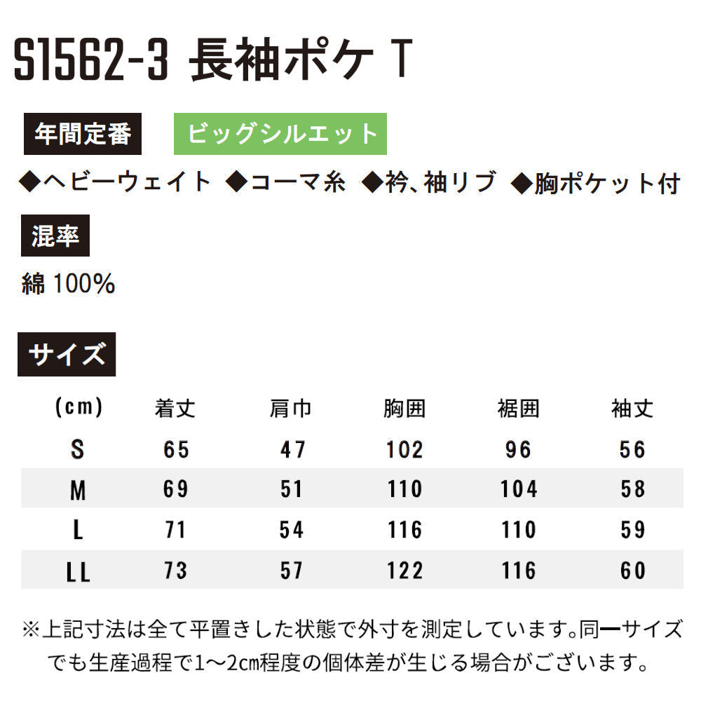 [STUD'S]コットン長袖ポケT(綿100%) S1562-3