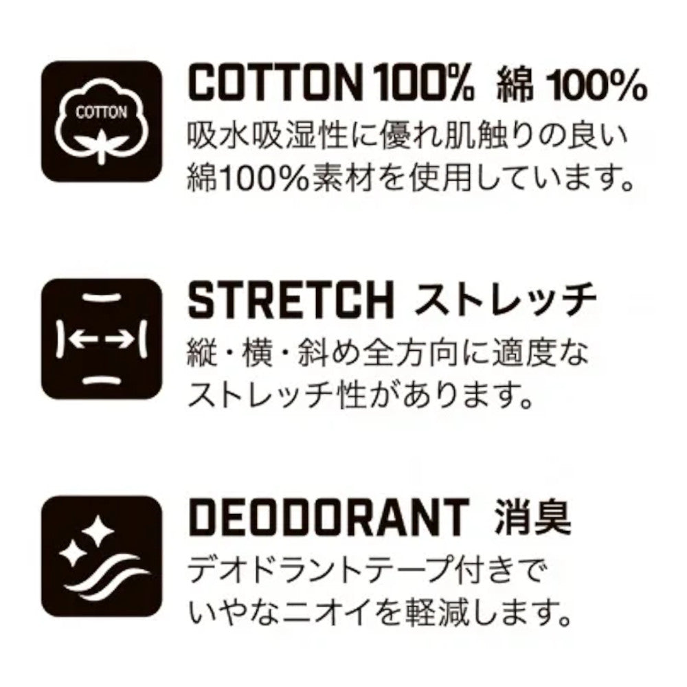 カジュアルな見た目ながら脇部分(生地裏側)に消臭テープを搭載しています。