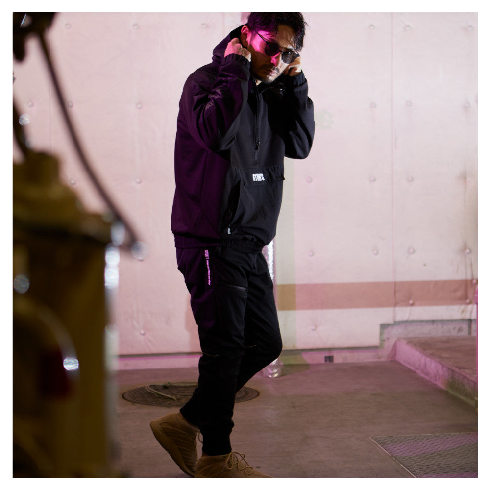 該当箇所:フード、両袖上部、腹部ビッグポケット、袖口、裾