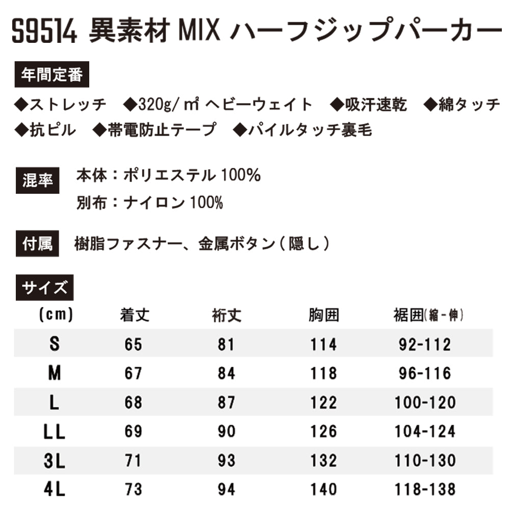 [STUD'S]異素材MIXハーフジップパーカー S9514