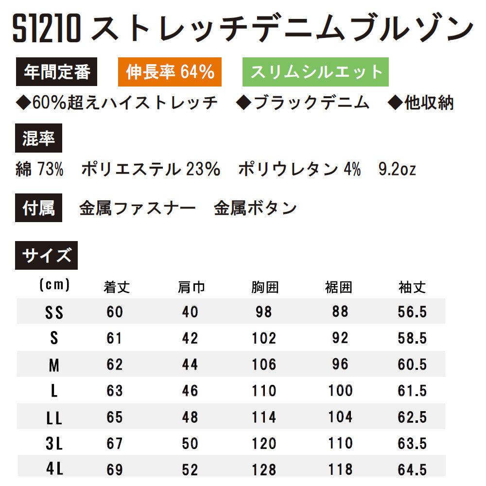 [STUD'S]スリムフィット ストレッチデニムブルゾン S1210