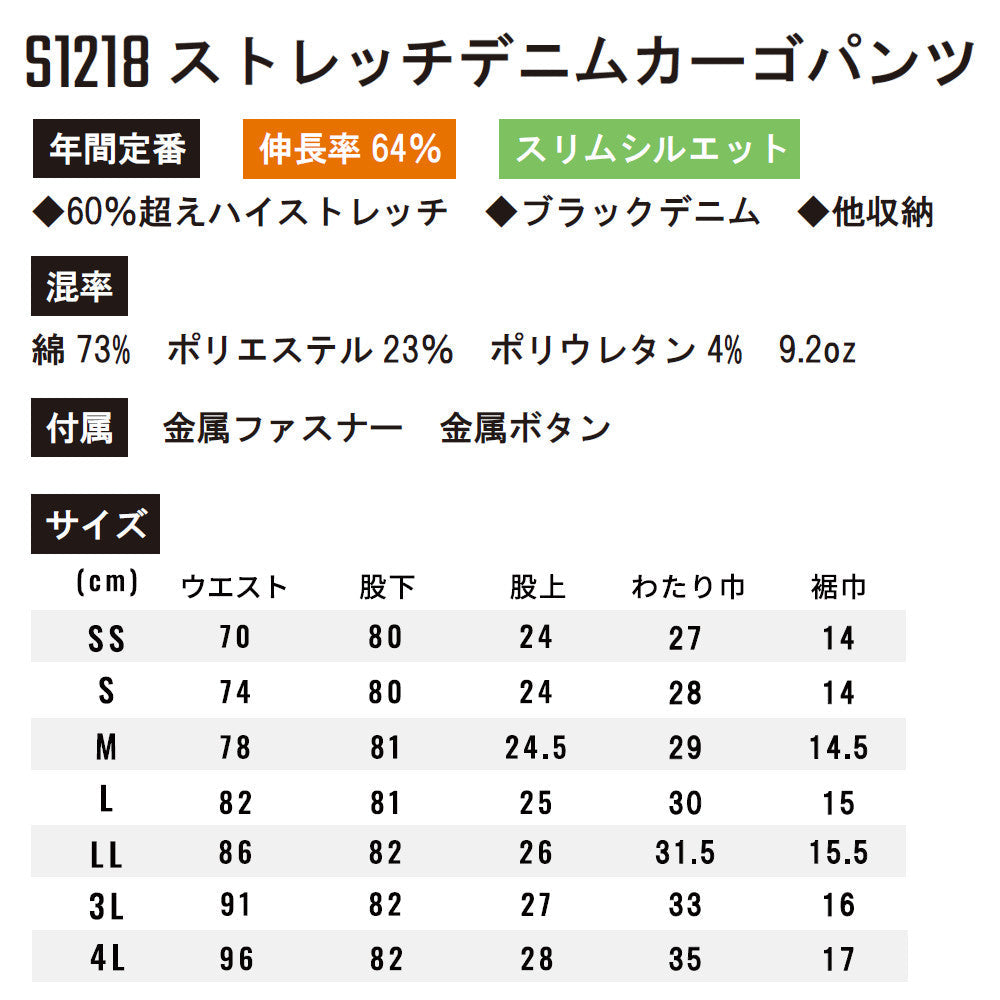 [STUD'S]スリムフィット ストレッチデニムカーゴパンツ S1218