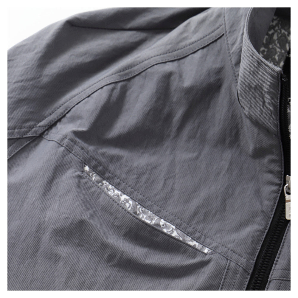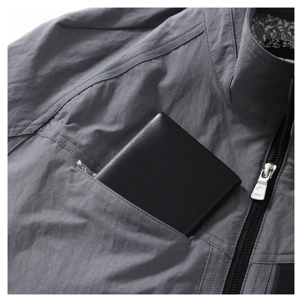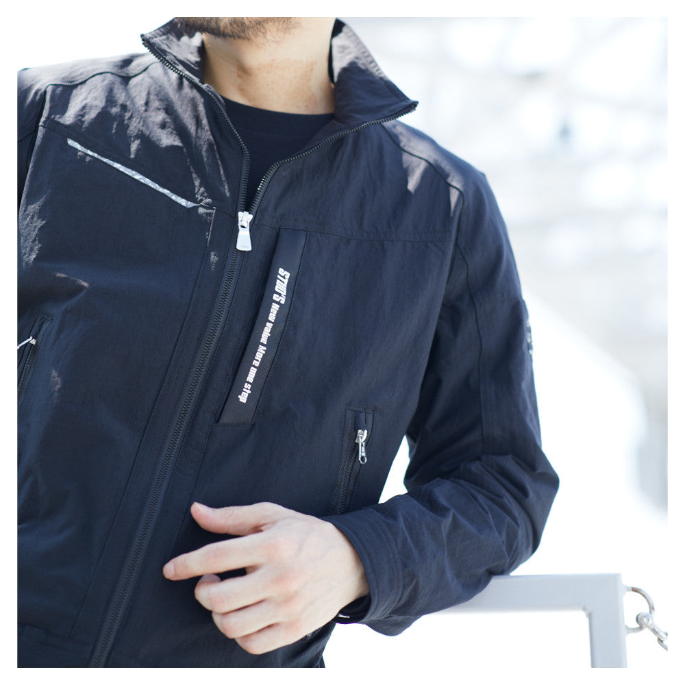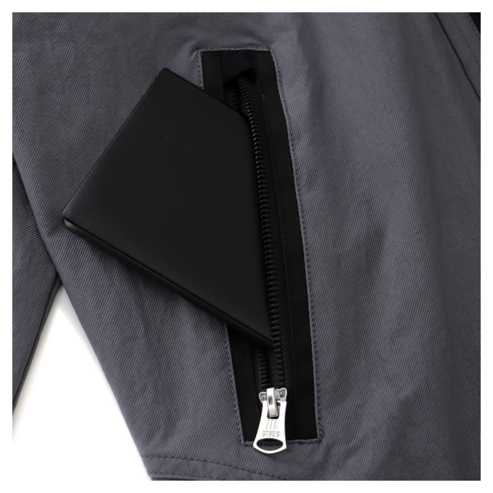 ポケット一覧:右胸隠しボタンポケット、左胸隠しファスナーポケット、両脇ファスナーポケット、左袖ペン差し