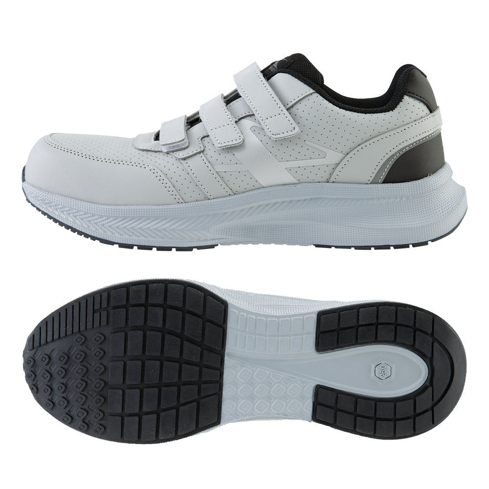 アッパーは合成皮革素材を使用し、水や油の浸入を防ぎます。